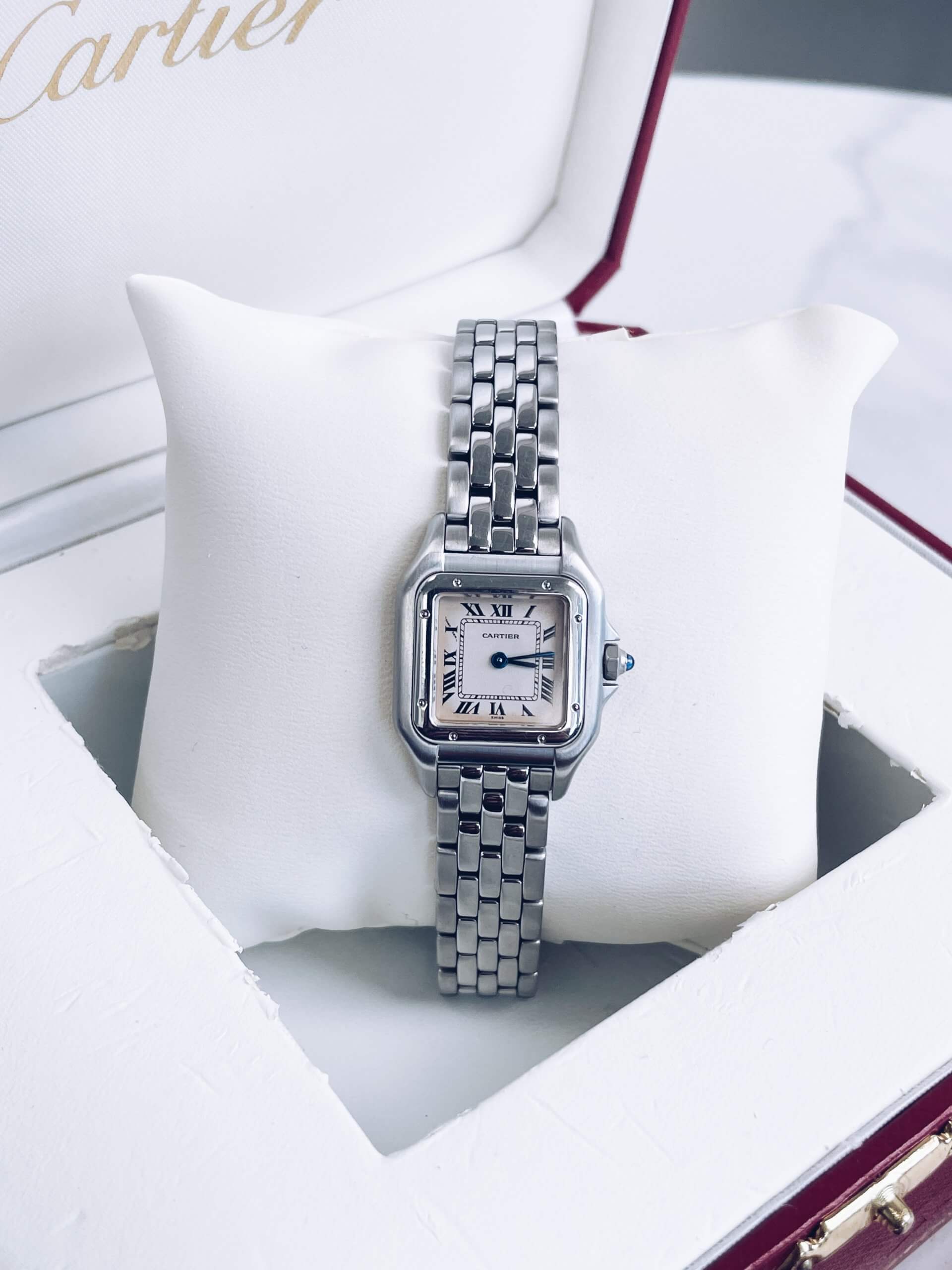At its heart, this 30m waterproof tested luxury Cartier watch boasts a quartz movement, considered one of the most reliable and accurate made in Switzerland, promising an almost perfect precision. A fresh battery is fitted on all our quartz watches along with free lifetime battery changes for years of maintenance free enjoyment