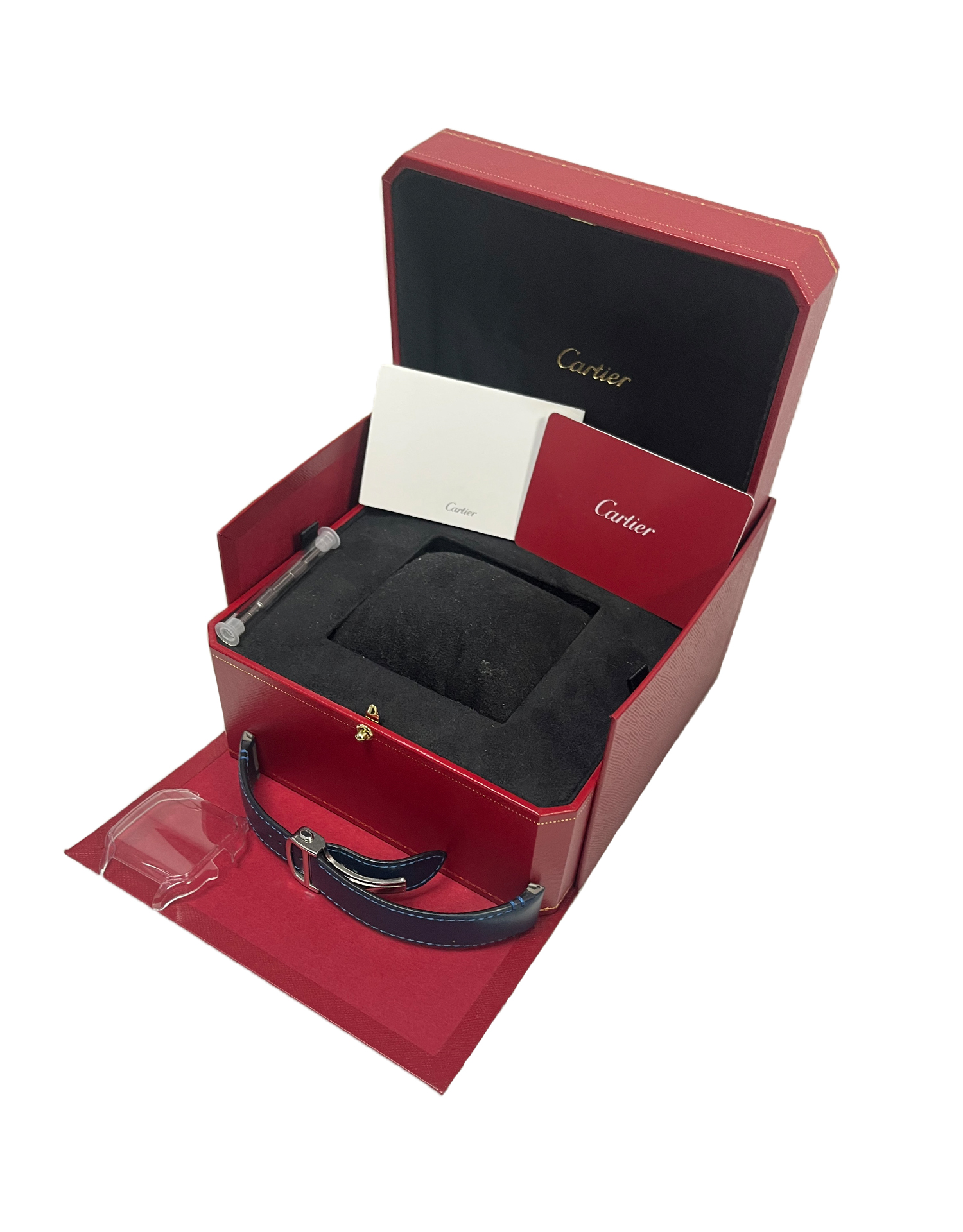 This amazing Cartier watch comes complete with a 12 month Guarantee, Cartier Watch Box, Cartier papers, Cartier calf leather strap, Bezel protector, Booklet, Watch Registry and Authentication Certificates. The bracelet will fit a wrist size up to a 18cm wrist (approx size). Links can be added or removed as required.