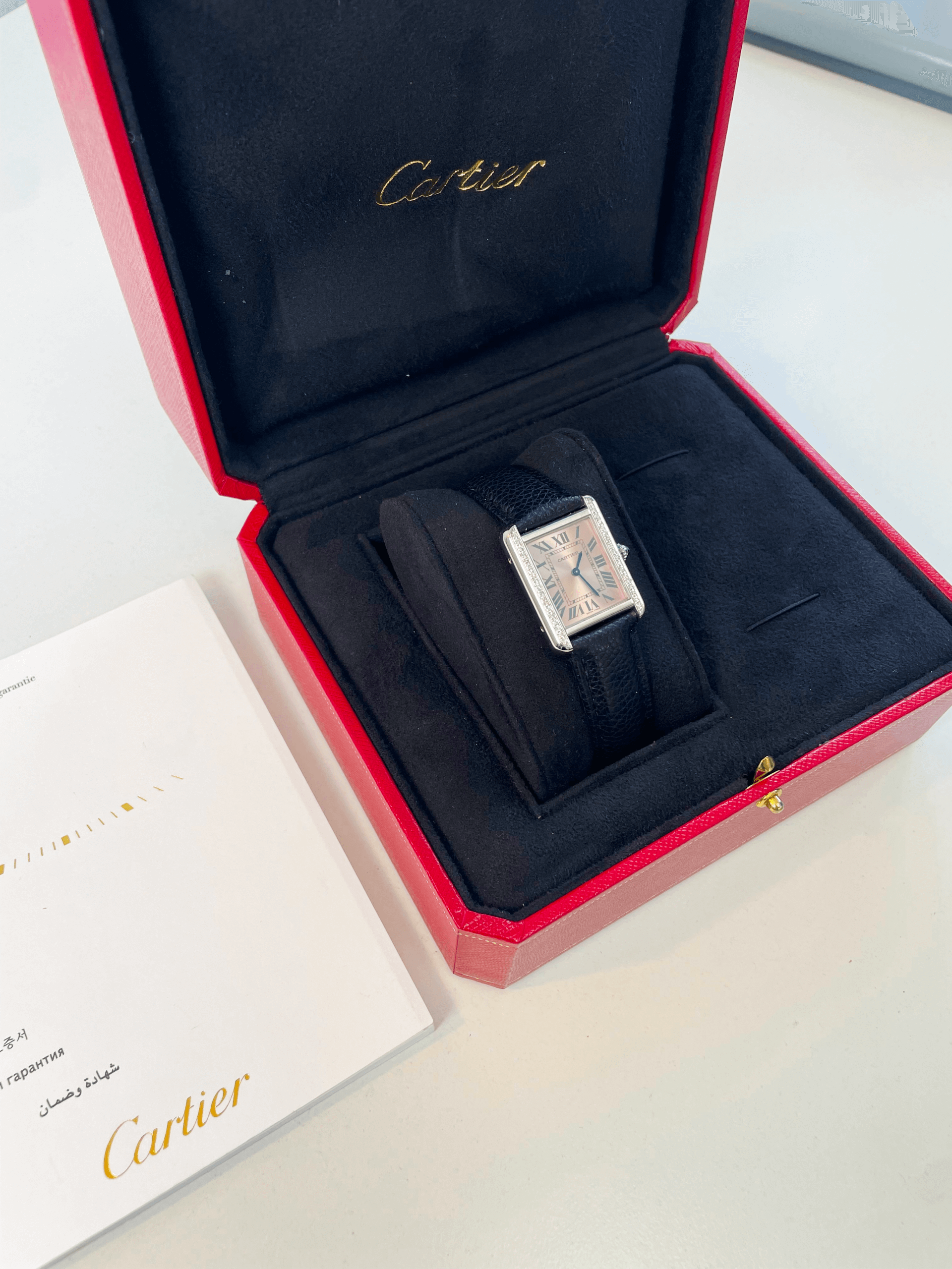 At its heart, this 30m waterproof tested Cartier watch boasts a quartz movement, considered one of the most reliable and accurate made in Switzerland, promising an almost perfect precision. A fresh battery is fitted on all our quartz watches along with free lifetime battery changes for years of maintenance free enjoyment