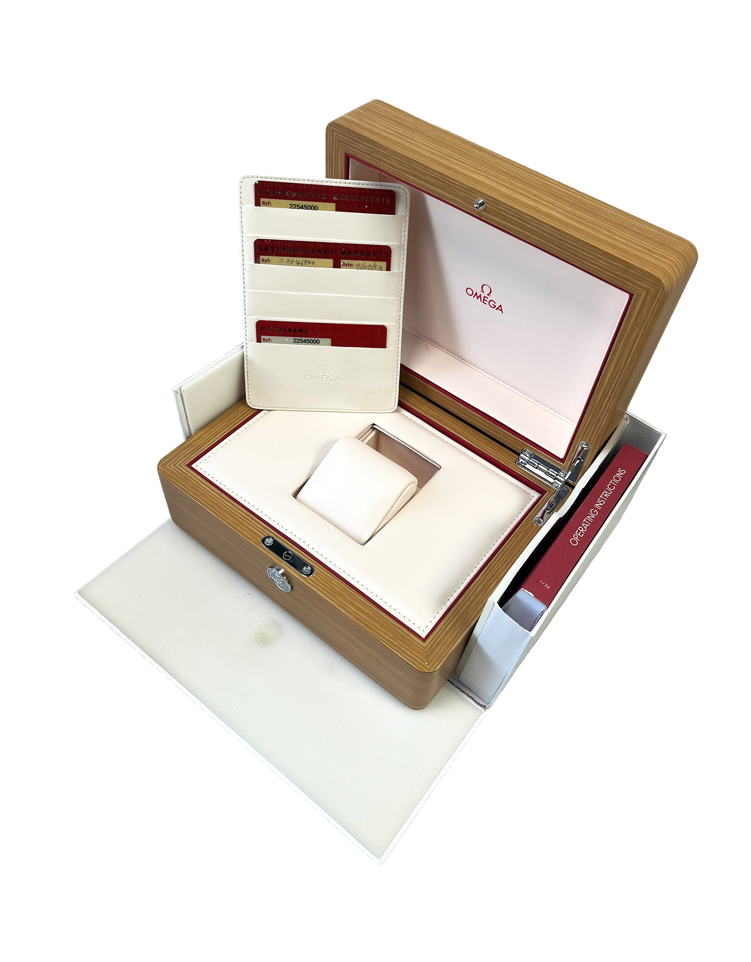 This luxury watch is presented as a full-set with a 1 Year Guarantee, Omega Watch Box (not date specific), Warranty, Chronometer and Pictogram Cards, Authentication Certificate, Watch Registry Certificate, Service Card and User Manual. The bracelet is sized to fit up to a 18cm (approx size), links can be added or removed as required.