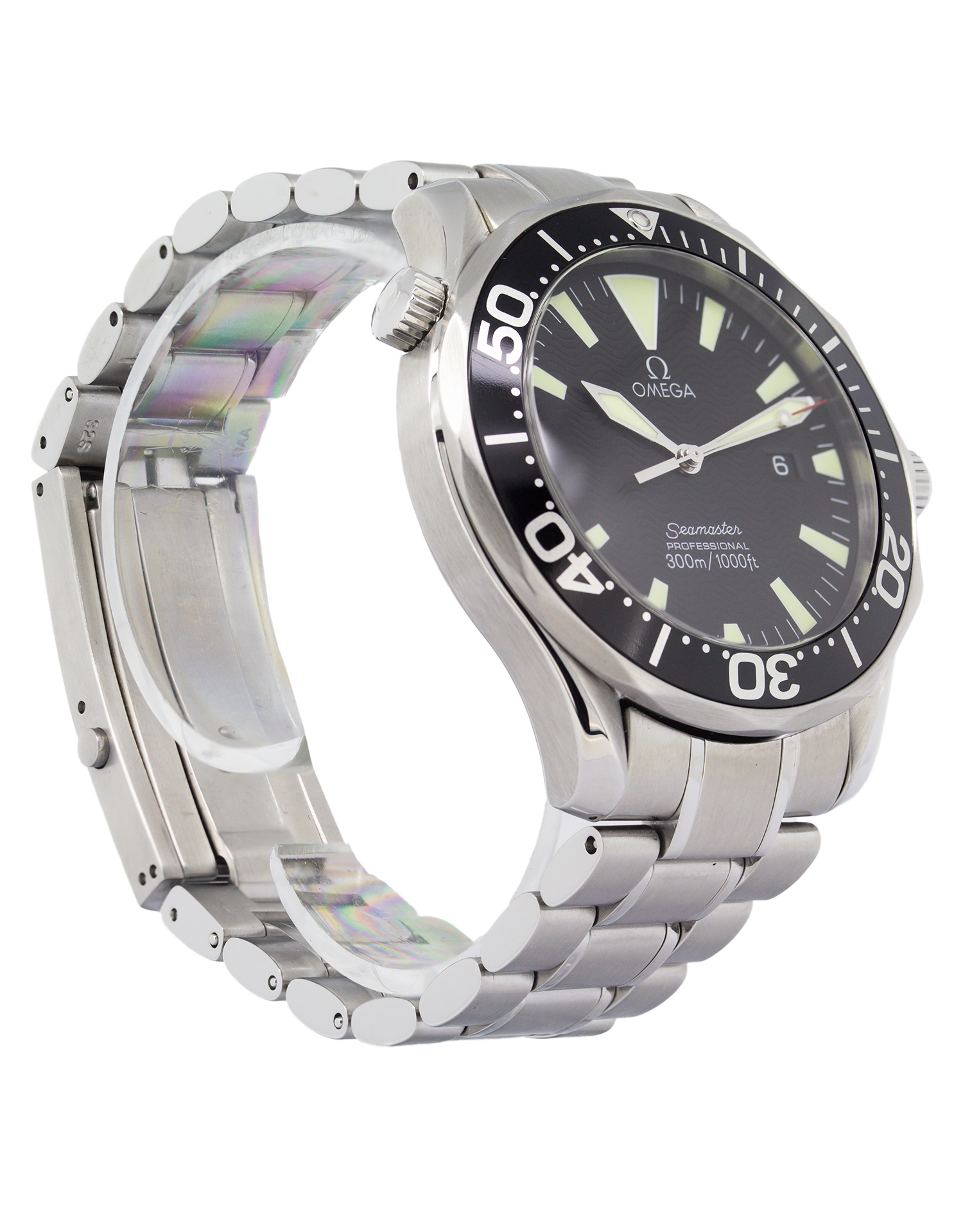 A sought after Omega 2264.50.00 Men’s watch with a 41mm stainless steel case and driven by a quartz movement housed behind scratch-resistant sapphire crystal glass. The stunning black dial is easy to read and features a date window at the 3 o’clock position. The unidirectional rotating bezel and screw in crown complete the look. The polished stainless steel bracelet is fitted with a deployment clasp for increased comfort on the wrist.