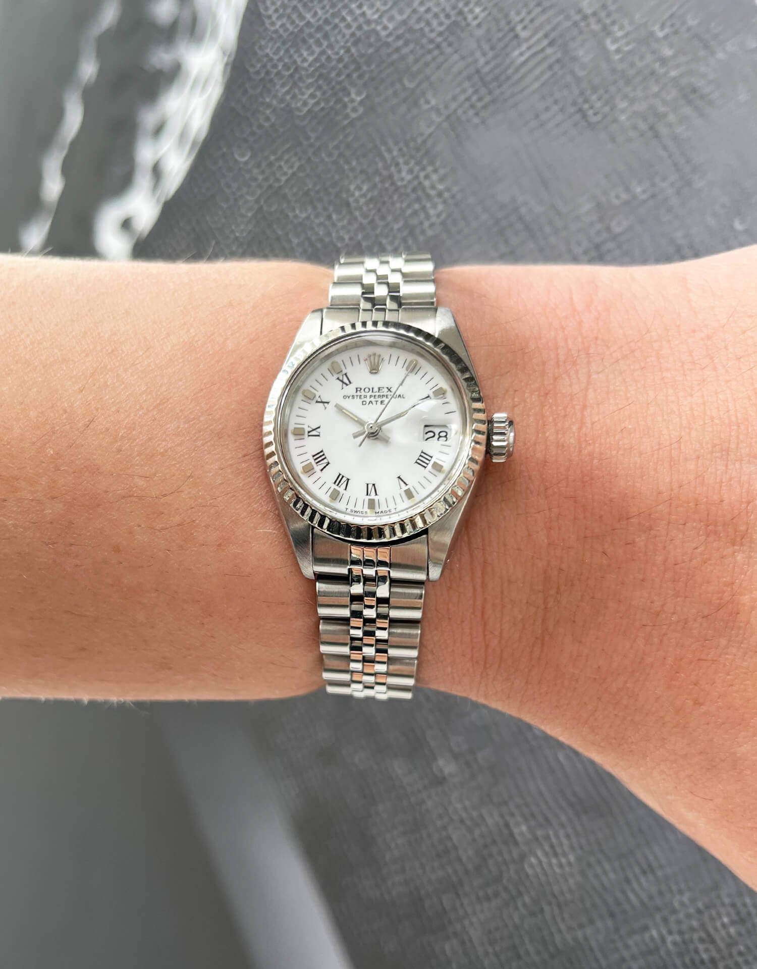 This Rolex ladies watch is powered by an ever reliable Rolex automatic movement that works by the movement of your wrist so no battery changes are needed! Rolex Automatic movements are made in Switzerland and must meet extremely strict criteria for precision before they make it onto your wrist.