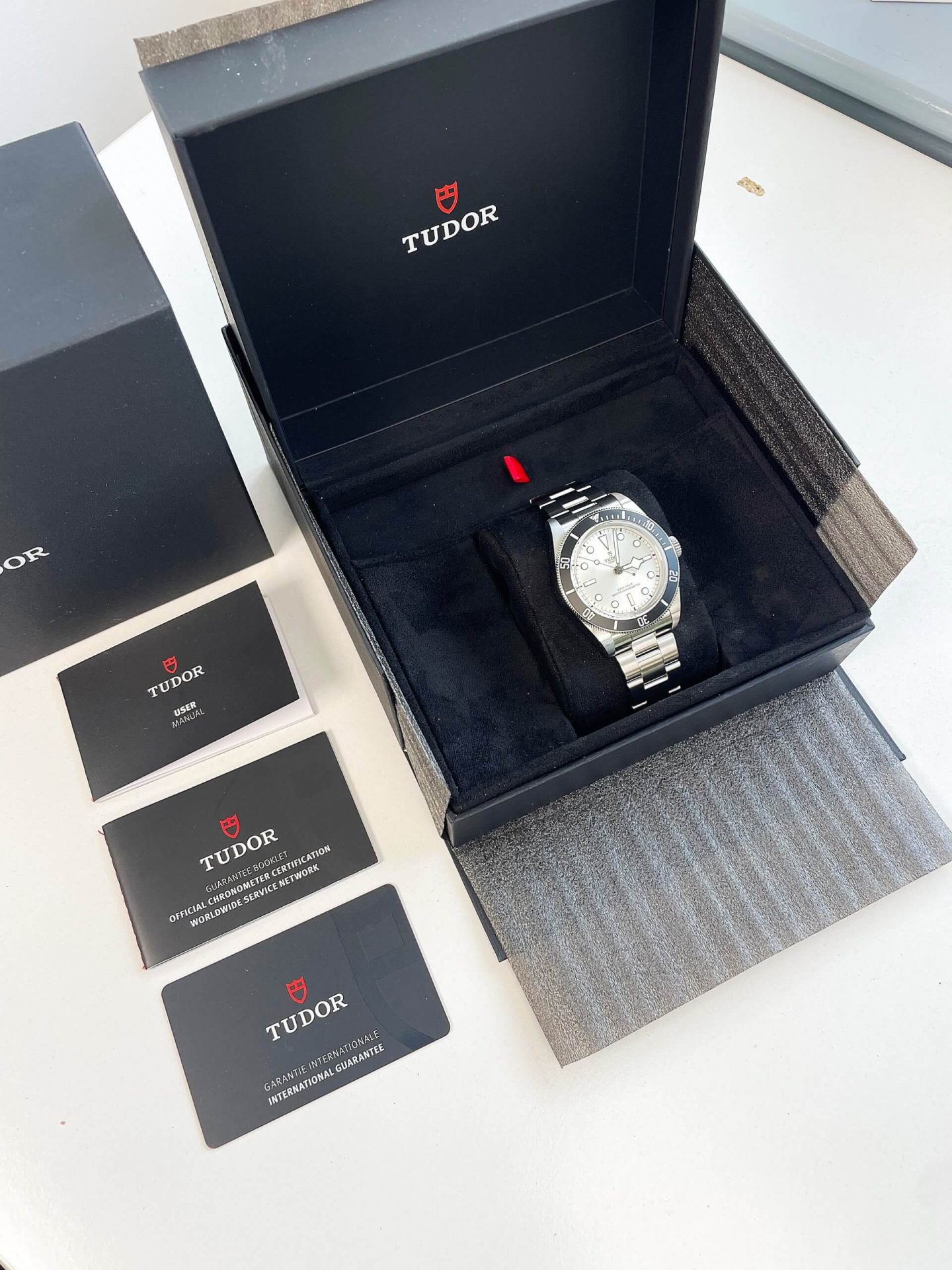 This outstanding Tudor watch set comes complete with a Tudor 5 Year Warranty (from 7/8/25) Tudor Watch Box, Papers, User Manual, Chronometer Certification, Watch Registry and Authentication Certificates. The bracelet will fit a wrist size up to large 20cm (approx size), links can be added or removed as required.